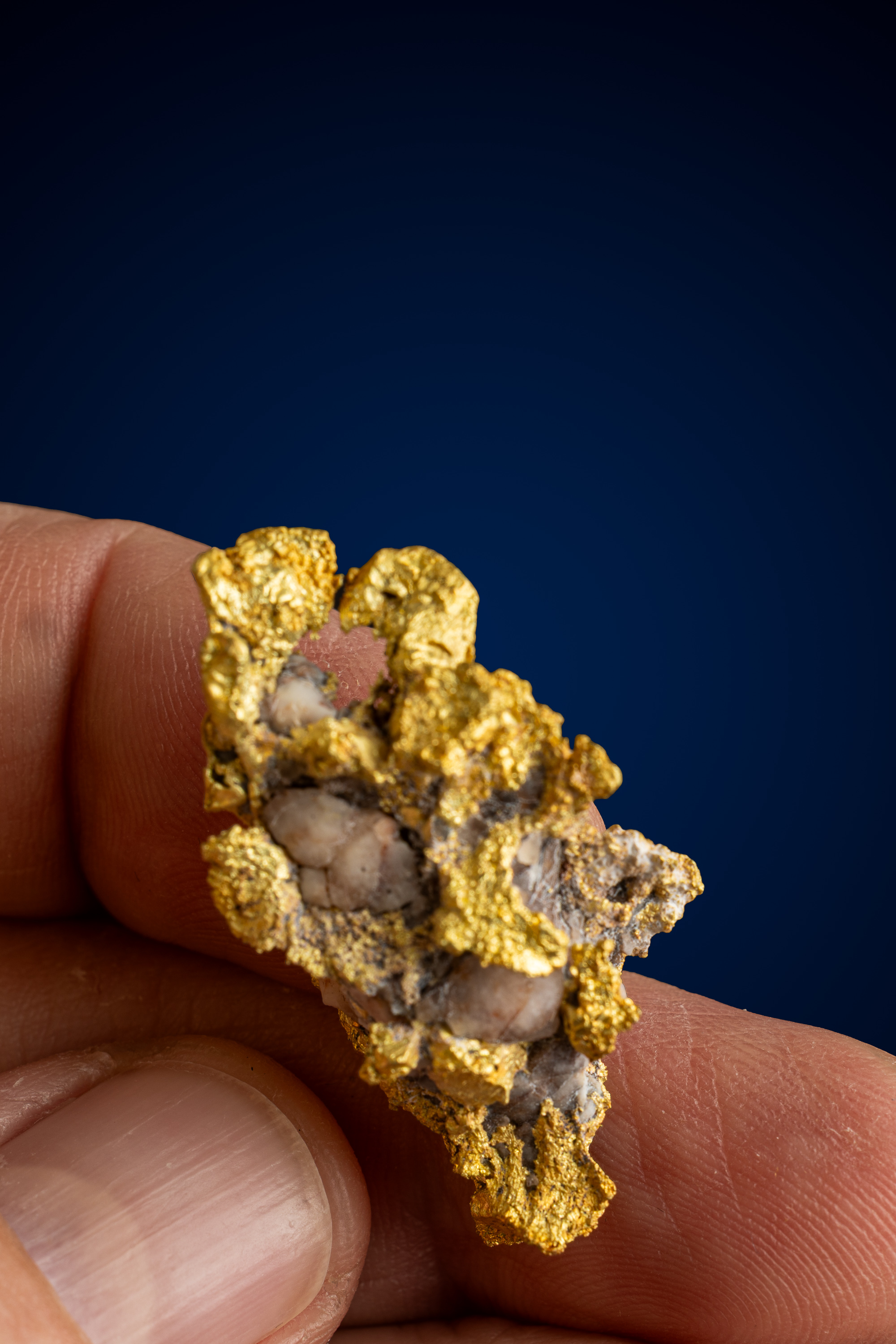 Even rarer are crystallized gold specimens and only about 0.04% of the gold in the world is crystallized. These natural gold nuggets and gold specimens are true - one of a kind - masterpieces from the earth’s natural elements and are found mostly in pockets where the gold was able to crystallize while it formed, much the same way other crystals form deep inside the earth.